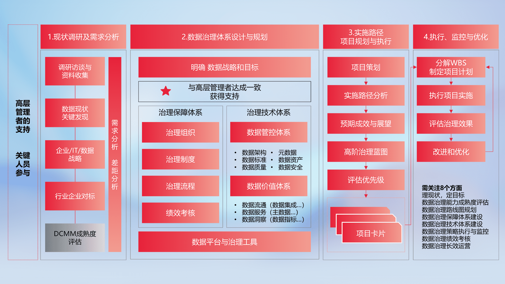 制定并执行统一的数据标准,,,规范数据定义和格式,,,消除冗余和不一致性,,实现跨部门和跨系统的数据一致性,,为企业提供标准化的数据基础。。